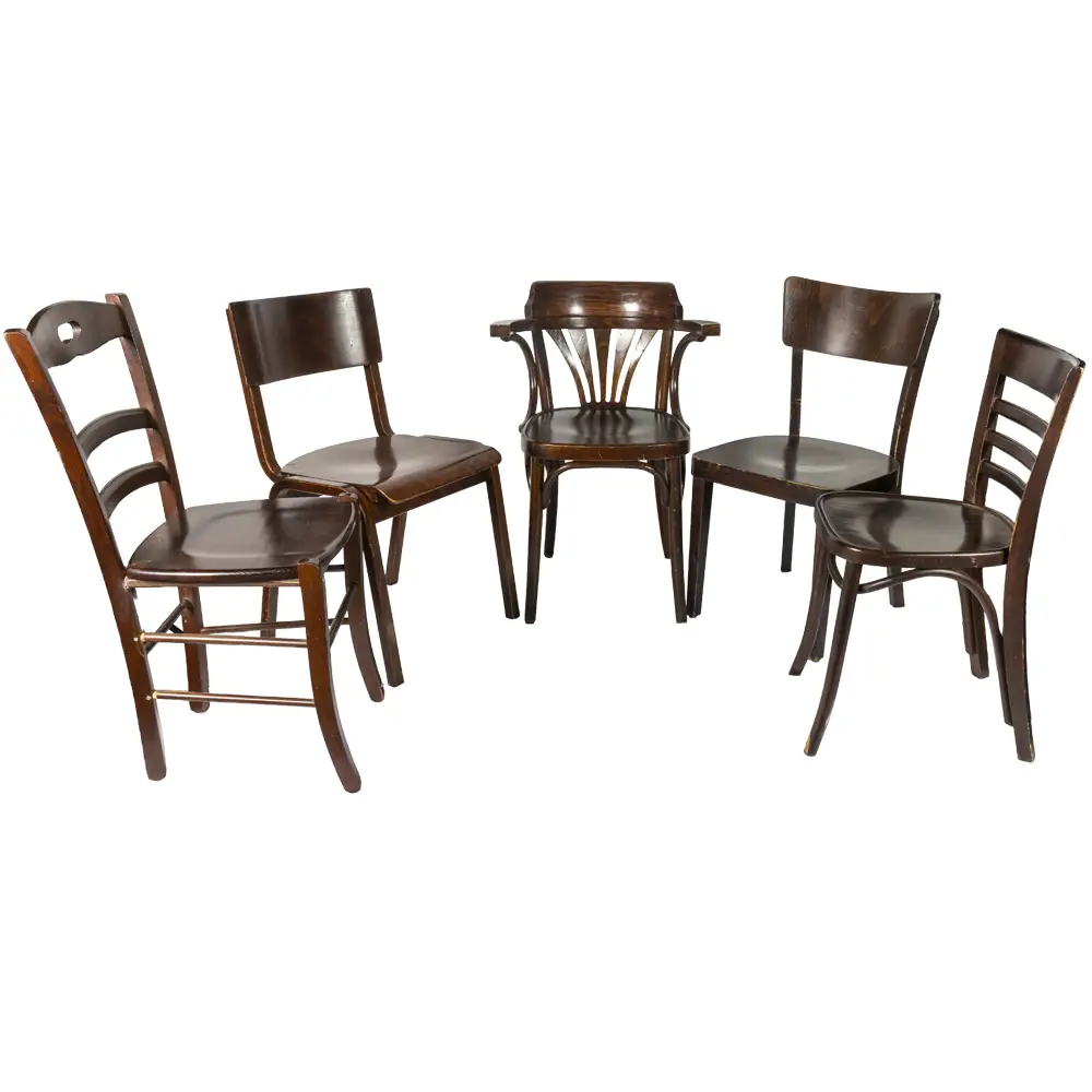 – Levering en variatie: we leveren verschillende modellen binnen dezelfde bruine, kroegachtige lijn; exemplaren worden gemengd geleverd zodat je opstelling meteen een geleefde, authentieke uitstraling krijgt.